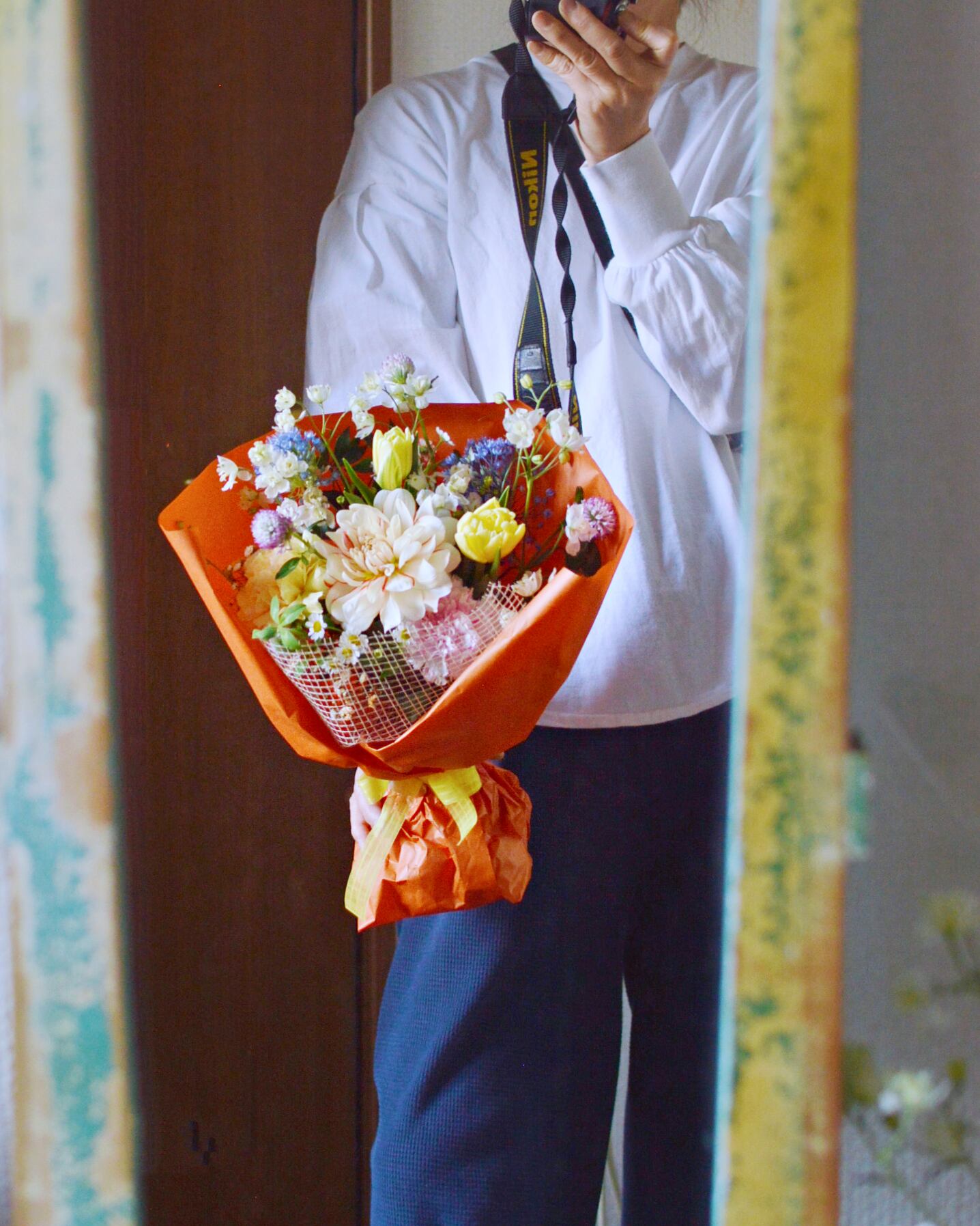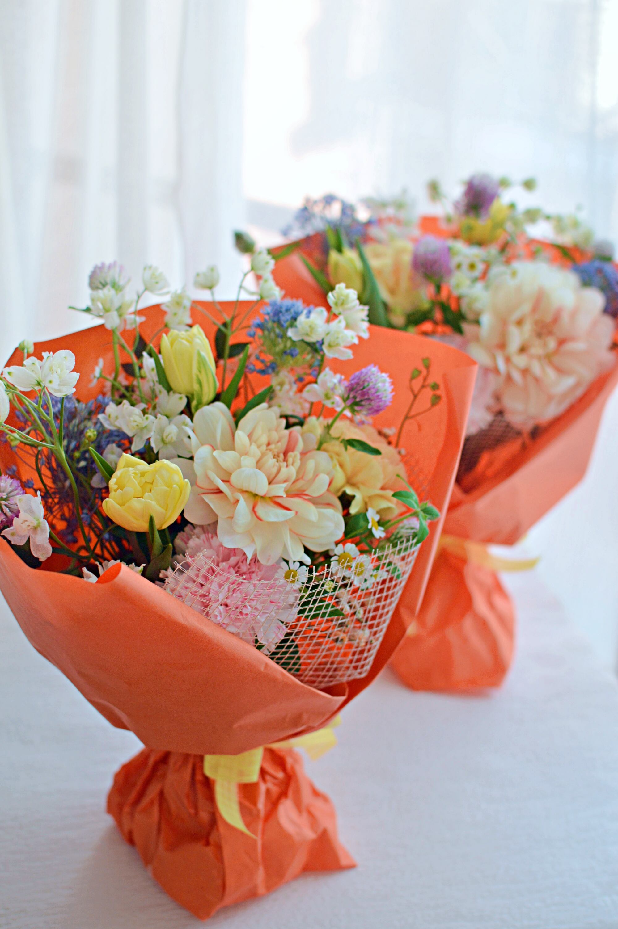 季節のお花をお入れした、そのまま飾れる生花花束(スタンディングブーケ)です。