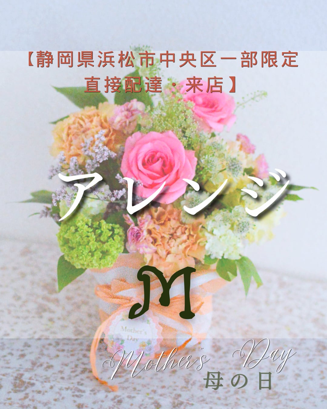 【静岡県浜松市中央区一部限定 直接配達・来店】生花アレンジ 母の日 Mサイズ