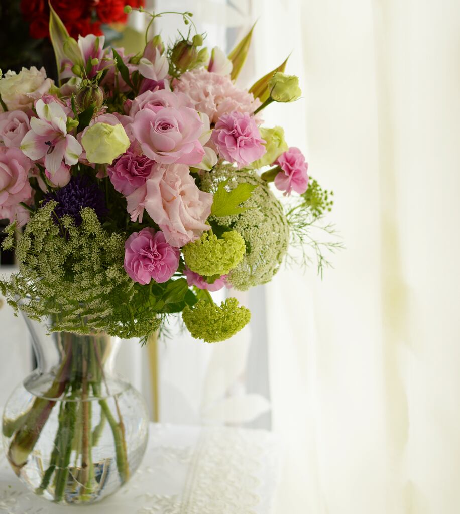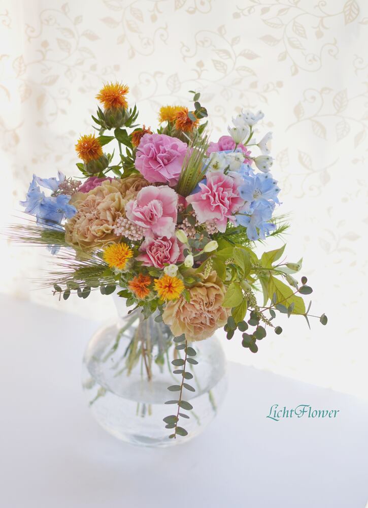花束と一緒に、扱い易く倒れにくい素敵な花瓶もセットでご購入できます。